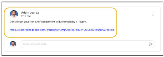 Step 1: In the Classwork tab of Google Classroom, click the three dots on the assignment in which you want to remember to remind your students. Click Copy link.